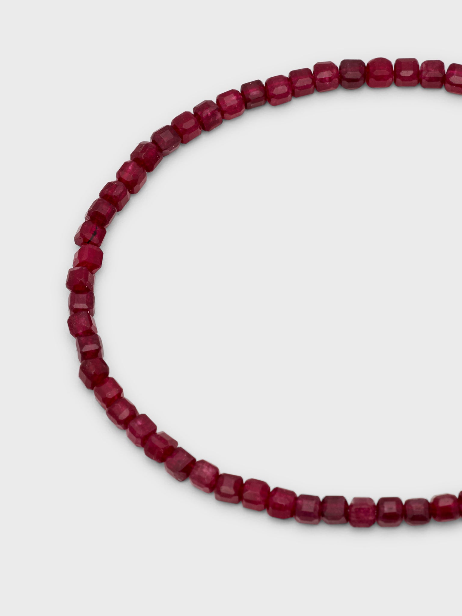 hand-beaded in faceted red jade, this bracelet features naturally varied tones of deep and soft reds, highlighting the unique character of each bead. Ethically sourced and crafted with subtle irregularities that celebrate natural form and texture.